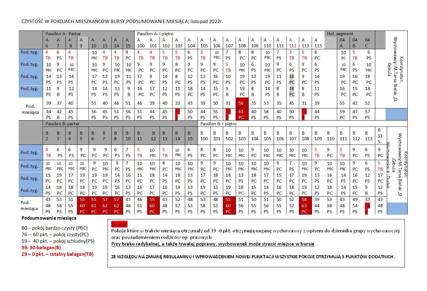 CZYSTOŚĆ W POKOJACH MIESZKAŃCÓW BURSY;
